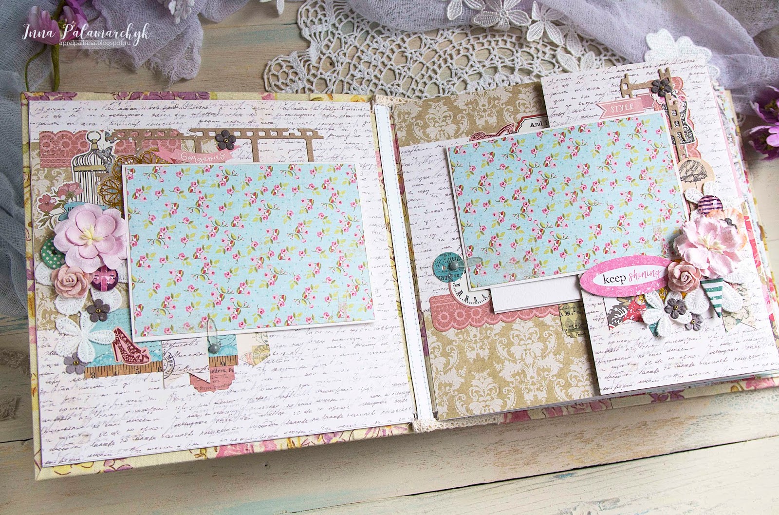 Вот такой стильный и романтичный альбом. Очень понравилось работать с этой коллекцией бумаги. Не смотря на разнообразие палитры и принтов, все они идеально сочетаются друг с другом. Альбом получился одновременно нежным и ярким.